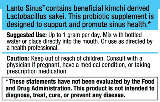 By introducing Lactobacillus sakei, a “good" bacteria found naturally in sinuses, Lanto Sinus promotes sinus health, especially for people needing sinus support.